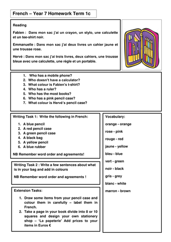 year 7 french homework by emmavjw teaching resources tes - french for beginners worksheets theworksheetscom theworksheetscom
